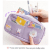 - The Kawaii Purple Canvas Pencil Case is a cute and functional accessory that is perfect for students, artists, and anyone who needs a reliable way to store their stationery and small items. The purple canvas material is durable and stylish, while the animal badge and pink accents add a touch of cuteness and charm to any desk or bag.